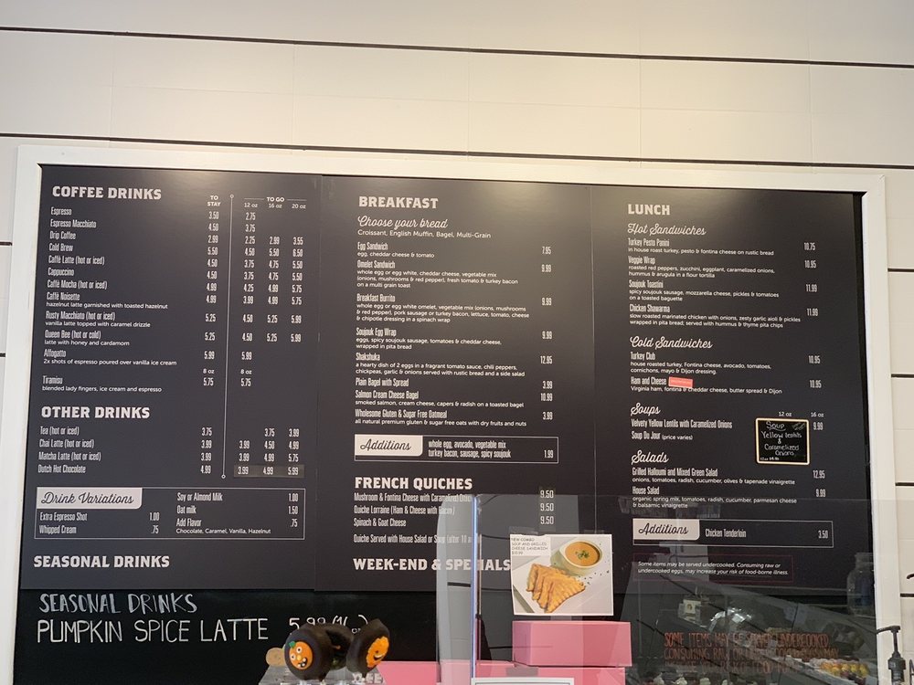 Beyond pastries, their lunch menu shines with options like the Short Rib Sandwich and Chicken Shawarma, both bursting with flavor. Not to miss, the Harvest Salad provides a fresh counterpoint. Indulge in rich beverages like their Spanish Iced Latte or creamy Chai Latte.